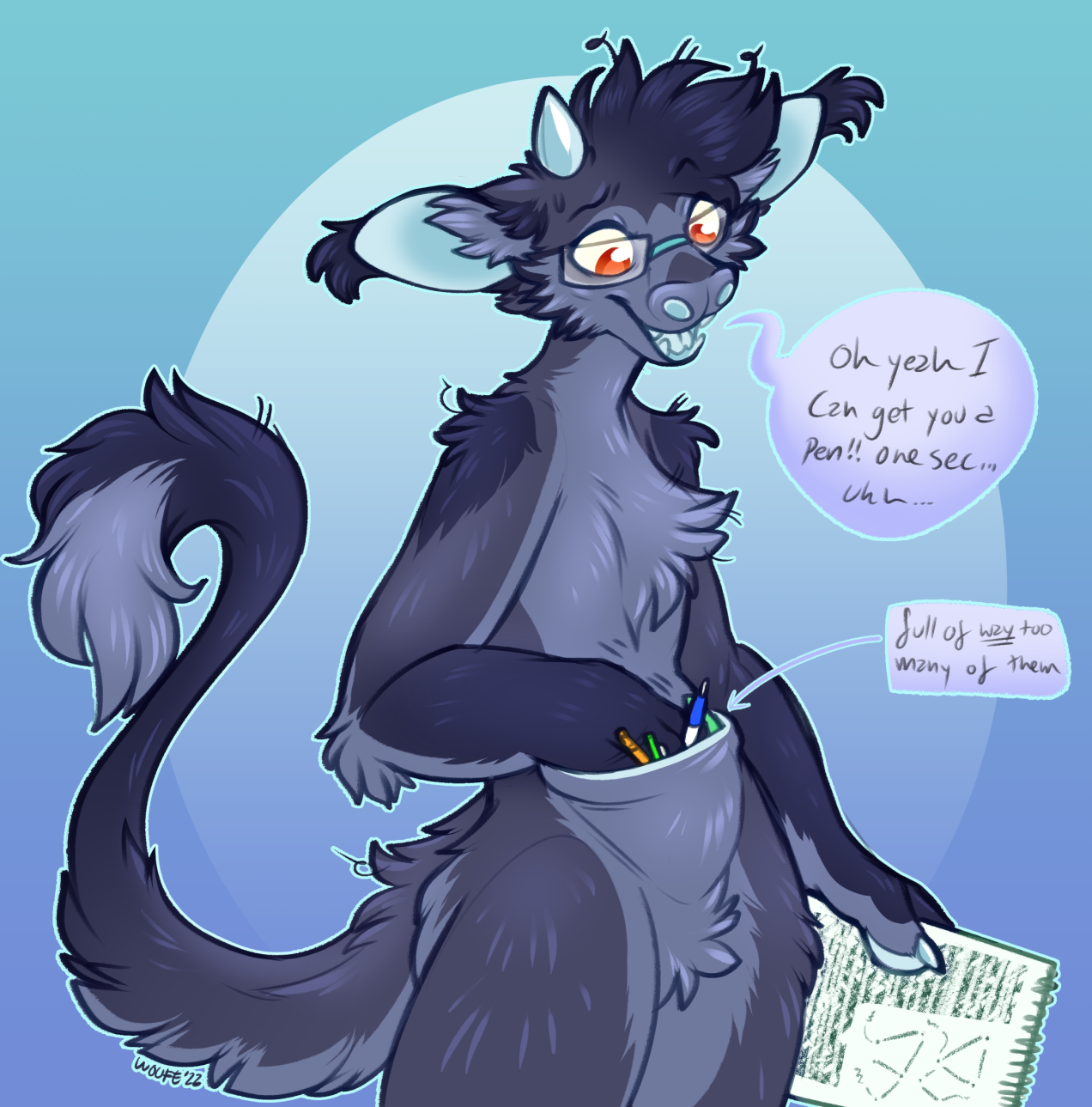 it might take vanta a bit to give you a writing utensil,,, theres a lot of random pen caps and fricked up pencils to sort through,,