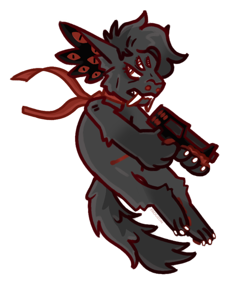 [[Gift] Pew pew by Frouzon (Art) ・ **Content Warning:** Multiple eyes, Guns](https://www.projectxeros.org/gallery/view/4645)