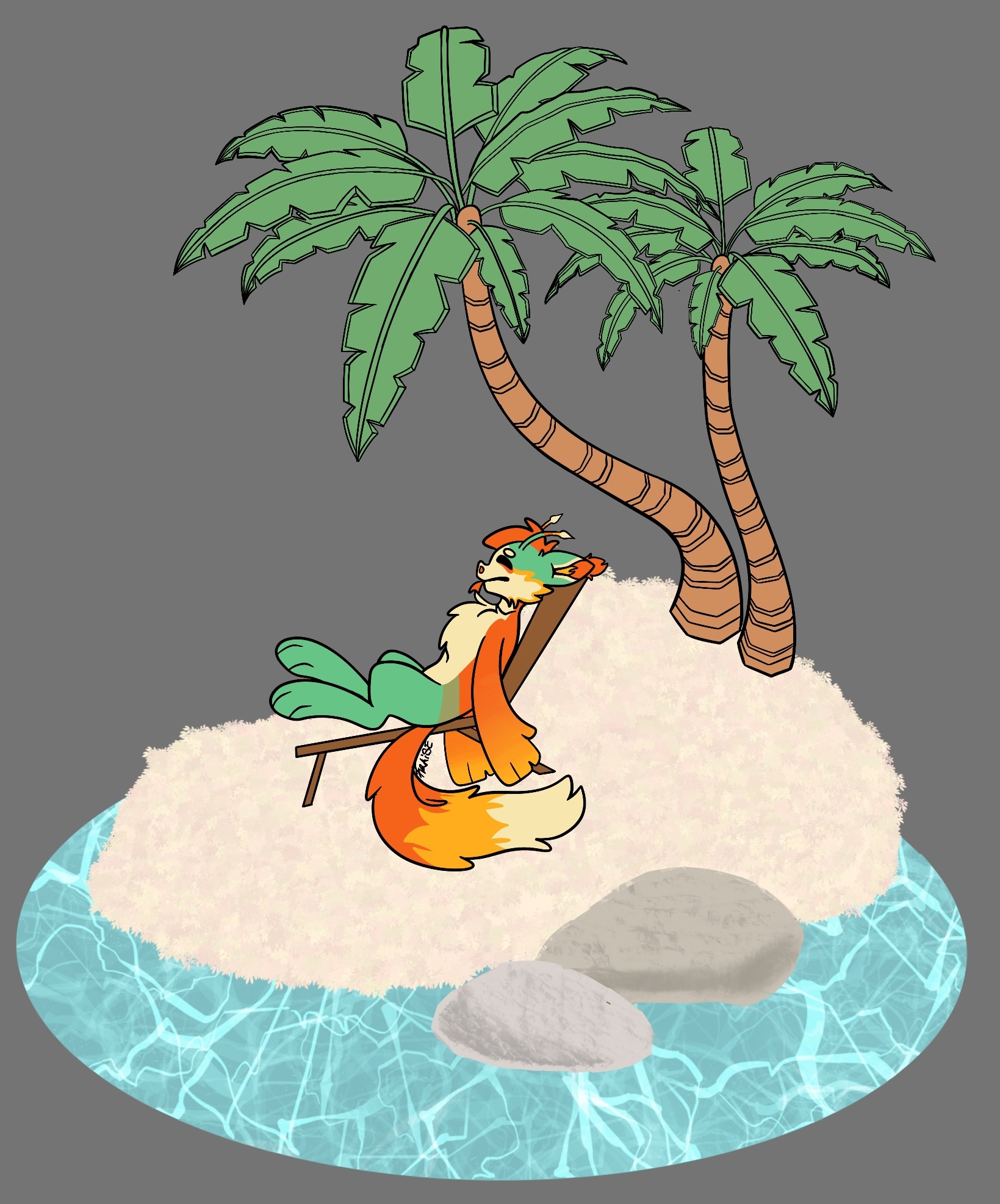 Guapi would treat this like a vacation and take a lounge chair to nap under the sun in.