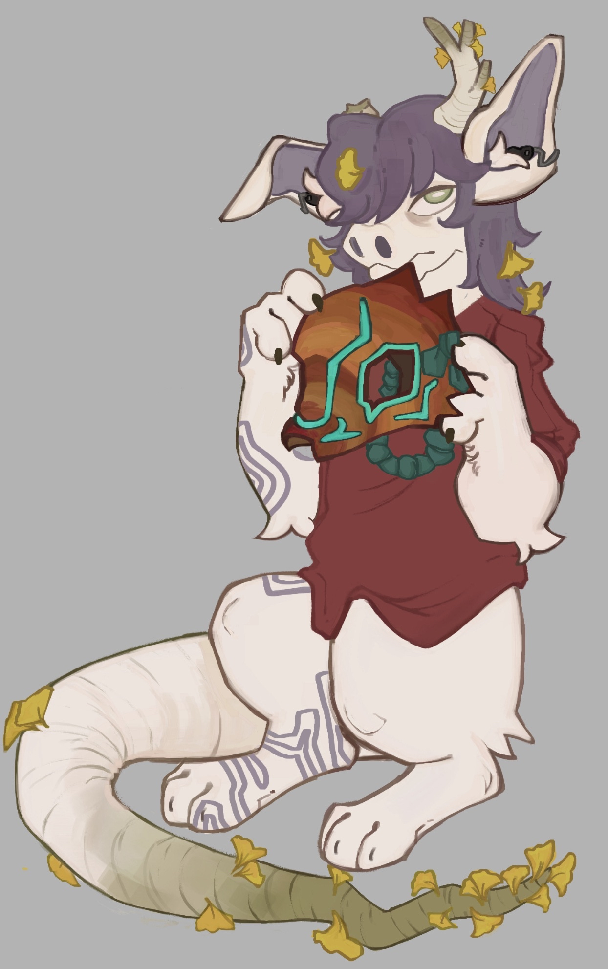 Gin is quite an anxious and reserved Xero, and prefers the quiet of tending to their various plants to costumes and celebration. However, they are still inspired by the tenacity and culture of their anscestors past, and lantern fruit carving allows them to spend time independently honouring them. While they may find large gatherings overwhelming, they are always willing to lend a paw to those who were not able to grow a large enough Lantern Fruit themselves for a mask, or are unable to carve their own regardless of the reason.